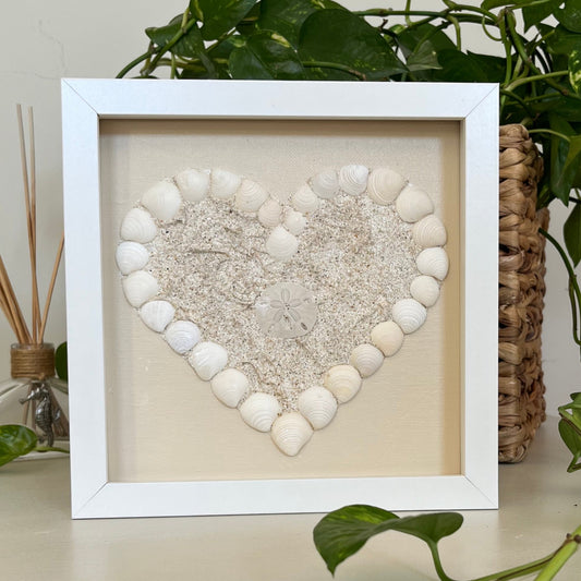 Coastal heart - grey & black clam shells